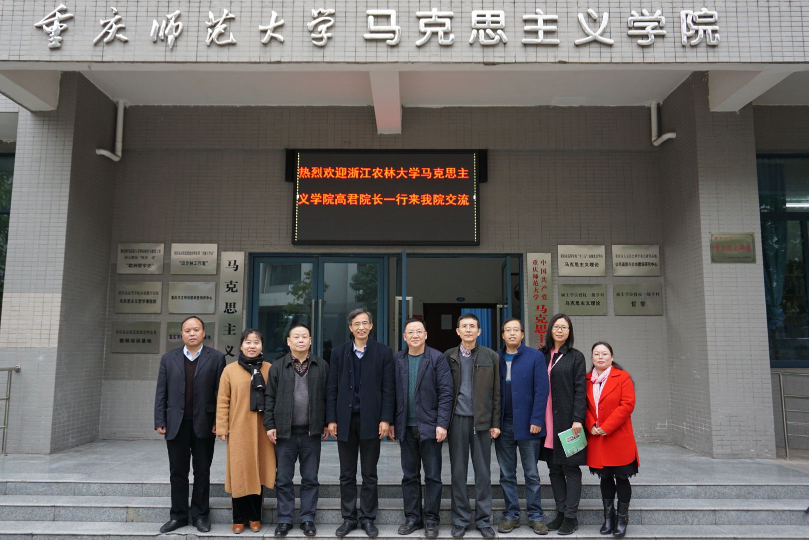 此次交流主要围绕学科建设、学术研讨、研究生招生与培养等方面进行。陈洪院长介绍了学院的发展历史、学科建设、专业建设、师资队伍、人才培养、思政课改革等概况,并就我院确立奋斗目标、搭建学科团队、创造必要条件、制定激励措施、引领支撑思政理论课教学、服务地方发展、学术交流等学科建设方面的举措作了介绍。陈院长讲到,我院未来三年的奋斗目标是以马克思主义理论学科为龙头,积极争取博士授权点申报成功;在学术研讨方面,我院秉承“请进来”和“走出去”的原则,一方面邀请知名专家进校开展学术讲座,另一方面我院教师参与到外校学术交流,同时每年通过开展研究生学术活动月、参加重庆市研究生马克思主义论坛等推进学术交流。况明安副院长就我院本科生思想政治教育实践教学和公共课的网络教学部分作了详细介绍,分享了我院思想政治理论课实践教学和网络教学的具体流程。随后,高君院长也对浙江农林大学澳门金威尼斯游戏的发展概况、学科建设情况、学术研讨、研究生招生与培养情况做了详细介绍,并就相关问题开展了交流。在交流过程中,双方围绕思想政治理论课实践教学和网络教学问题展开了讨论交流,大家认为,在思想政治教育教学研究问题上,教学应该回归课堂,坚守好课堂主渠道,向课堂要质量。
