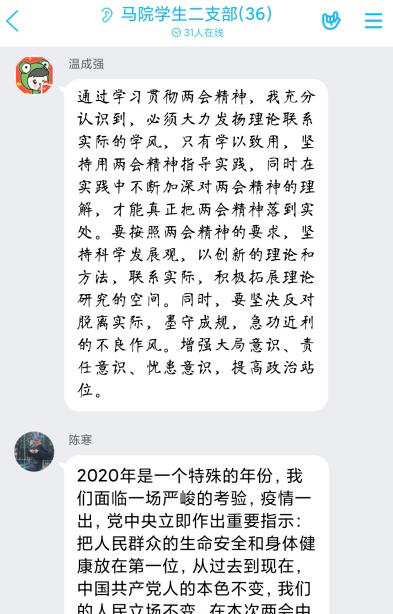 会议伊始,组织委员钟美琪同志对本次党日活动流程进行了说明,随后组织支部成员进行了线上学习,支部各成员结合文件内容和精神,交流讨论学习心得。大家的讨论进行得十分热烈。其中,方敏同志认为全国人大高票通过的关于建立健全香港特别行政区维护国家安全的法律制度和执行机制的决定是维护香港繁荣稳定、维护国家主权安全、维护宪法和基本法权威的重大举措。会议于17:30圆满结束。