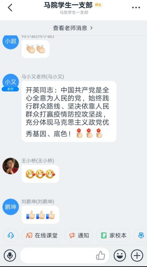 在以习近平同志为核心的党中央坚强领导下,全国抗击新型冠状病毒肺炎取得重大成果。2020年3月18日,时值习近平总书记“在学校思想政治理论课教师座谈会上发表重要讲话”一周年之际,为进一步发挥党支部的战斗堡垒作用和党员先锋模范作用,学院党委决定开展“党员先锋示范活动”。为响应党组织的倡议,我院学生一支部全体师生党员在线上召开了“党员先锋示范活动倡议书”主题党日学习交流会。