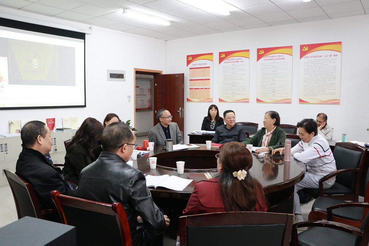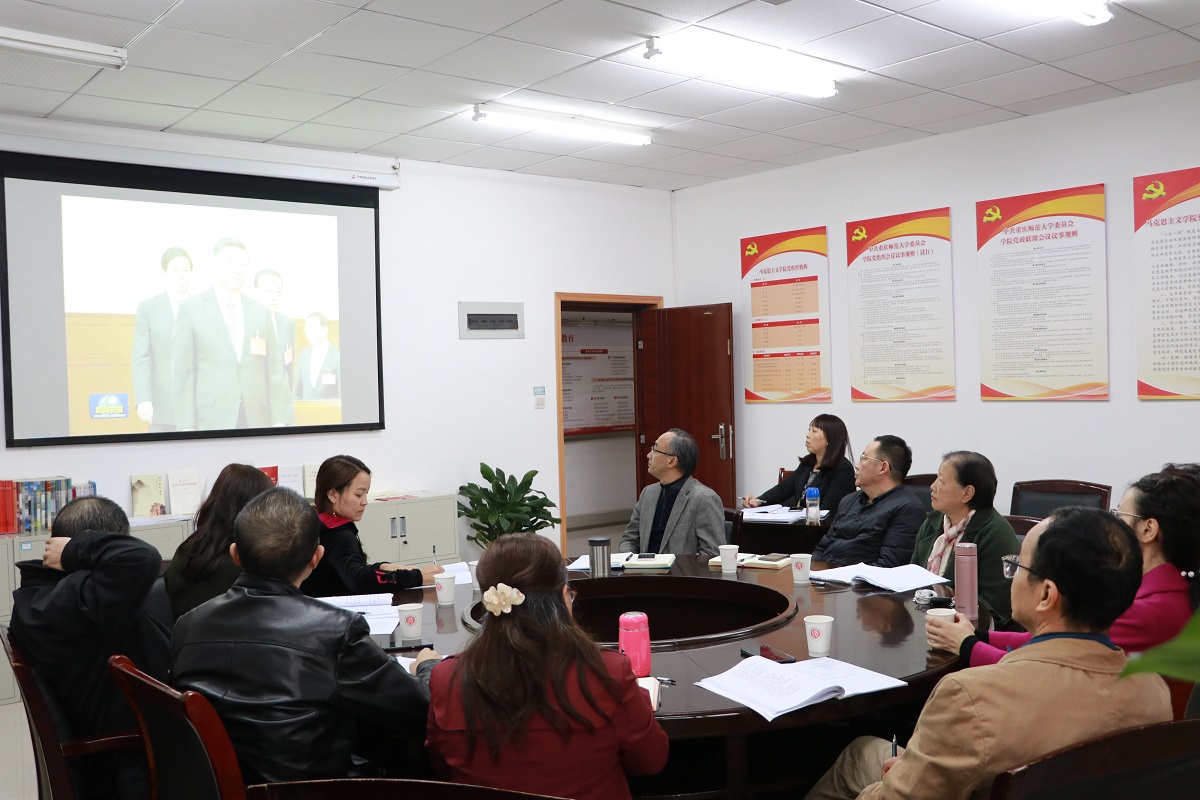 首先,参会全体人员对《中国共产党第十九届中央委员会第四次全体会议公报》进行了视频学习。随后,刘军书记介绍了习近平总书记关于十九届四中全会《中共中央关于坚持和完善中国特色社会主义制度、推进国家治理体系和治理能力现代化若干重大问题的决定》的起草情况说明,帮助大家加深学习理解。学习结束后,刘军书记带头与大家分享了他的学习心得。他谈到:党的十九届四中全会意义深远,《决定》内容全面系统,是党中央站到新的历史与时代高度对国家治理未来发展绘制的清晰蓝图;党中央对《决定》的起草、准备、修改及完成时间跨度大,推进工作的务实有效、起草流程的规范严谨对我们工作起到良好的学习和示范作用;将十九届四中全会精神结合学院改革发展、内部治理和高校思政课老师的具体工作,以实际行动担当“为党育人,为国育才”和“立德树人”的重要使命。