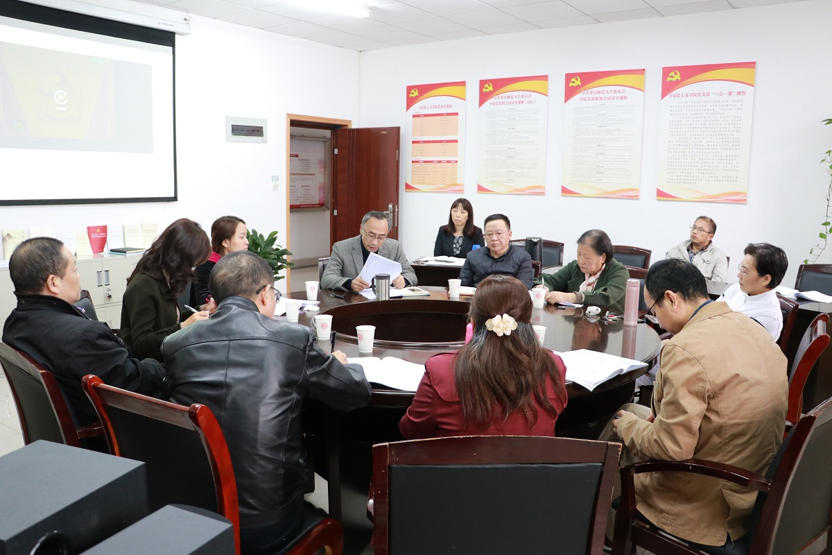 按照“不忘初心、牢记使命”主题教育学习的计划安排,11月6日下午,我院党委理论学习中心组在学院301会议室开展了本月首次集中理论学习会议,主题为党的十九届四中全会精神的学习。参加本次学习的人员有学院党委委员、纪委委员、党支部书记,学校“不忘初心、牢记使命”主题教育督导组的吴友恒同志参加了此次学习,学习会议由党委书记刘军主持。