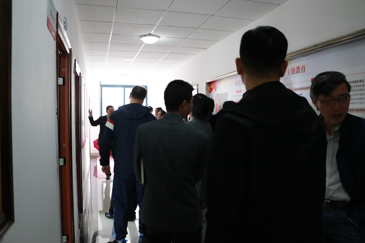 2019年10月17日上午,学校“不忘初心、牢记使命”主题教育办公室举办了“不忘初心、牢记使命”主题教育工作推进会,各二级学院党组织书记参加。会议开始前,所有参会人员到我院作了现场交流。我院党委副书记、院长陈洪同志向大家介绍了学院党委开展“不忘初心、牢记使命”主题教育情况。