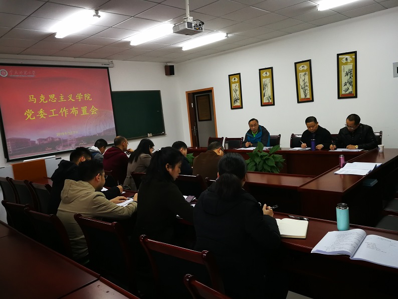 为贯彻落实新学期学校党委的工作要求,深入开展和着力推动学院党建工作,3月7日下午,学院党委在309会议室召开工作布置会,传达布置新学期有关工作。学院党委委员、各党支部书记参加了此会,会议由院党委书记刘军主持。