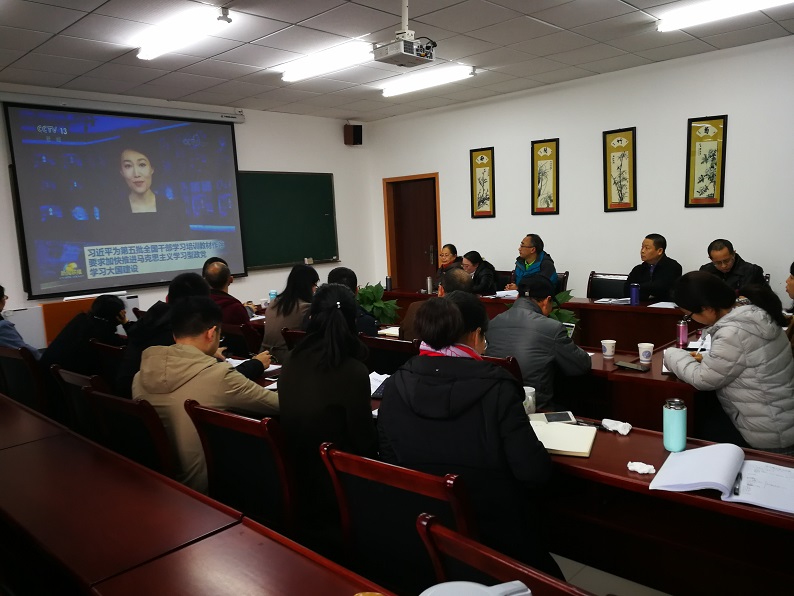 会上,刘军书记组织大家首先学习了《中共重庆师范大学委员会思想政治理论学习实施办法》的主要精神,分别从总则、学习组织、学习内容及形式、学习管理、督查与考核、附则等六个方面向大家做了学习和介绍,尤其是学校党委对思想政治理论学习的学习对象、学习内容、学习形式和学习要求进行了详细的解读,他强调希望大家通过实施办法的学习深刻认识思想政治理论学习的重要性,从思想认识、行动落实都要到位;接着全体成员观看了《习近平为第五批全国干部学习培训教材作序》视频新闻,进而学习了习近平总书记的序言全文,认真领悟了加快推进马克思主义学习型政党学习大国建设的重要意义;最后,刘军书记传达了学校近期开展的“安稳工作会暨2019年度上半年意识形态工作会”精神,强调大家要在灵魂深处高度重视思想政治学习和意识形态工作,准确研判和把握今年整体工作形势,努力做到增强“四个意识”、坚定“四个自信”、做到“两个维护”。