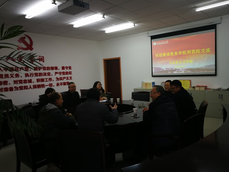 为进一步加强高校党的基层组织建设,加强校内党建工作的交流,2月27日上午,继续教育学院党总支书记胡忠建、副书记欧阳卫东及相关党务干部人员一行来到我院,与学院党委在301会议室开展了“党建工作交流会”,学院党委书记刘军、院长陈洪参加了交流会。