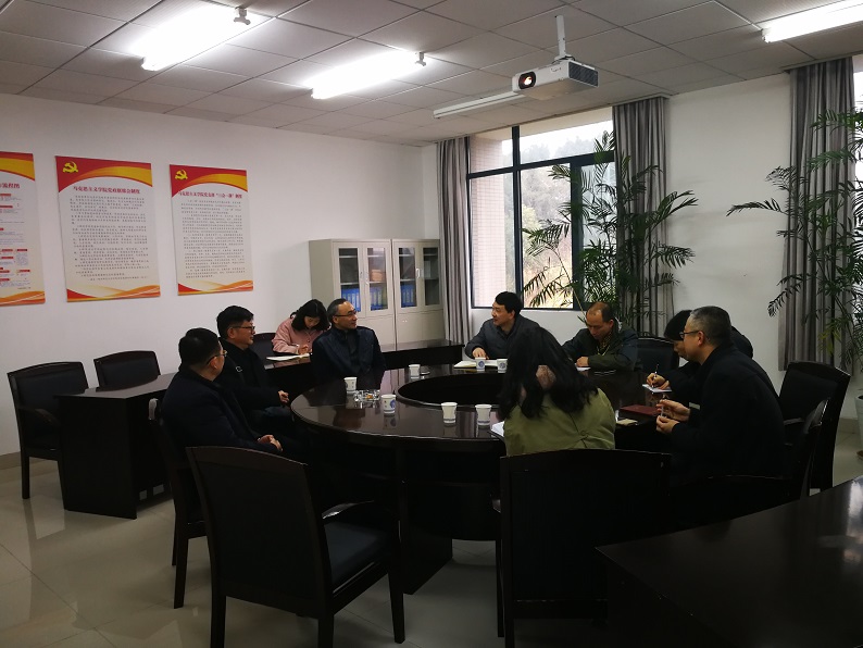 会前,学院领导带领胡忠建书记、欧阳卫东副书记一行参观了学院党建场地及文化建设。会上,刘军书记首先向大家介绍了学院党委2018年开展的党建主要工作:过去的一年,学院确立“三心五动”工作指针,以“三化三创”为统揽和抓手,积极推进全面从严治党和党建工作向支部延伸,落实党支部“七有八要”工作要求,不断完善党员活动室阵地建设和党建工作上墙制度,同时以文化建设凝聚人心,构建学院命运共同体和积极向上文化。在新的学期,学院党委将继续保持和发扬“335”的工作理念,在“规范、落实、提升”上下足功夫,着力推动党建各项工作上台阶。陈洪院长也谈到了对党建工作的体会:学院党建工作需要硬件和软件同时支撑,我院党建工作下一步在硬件上设想能成立学术著作等实物陈列室,软件上与文化有机结合,力争创造更好的文化环境,面向全校师生,打造全新的文化阵地,为师生创建良好的学习氛围,彰显马院党建特色。