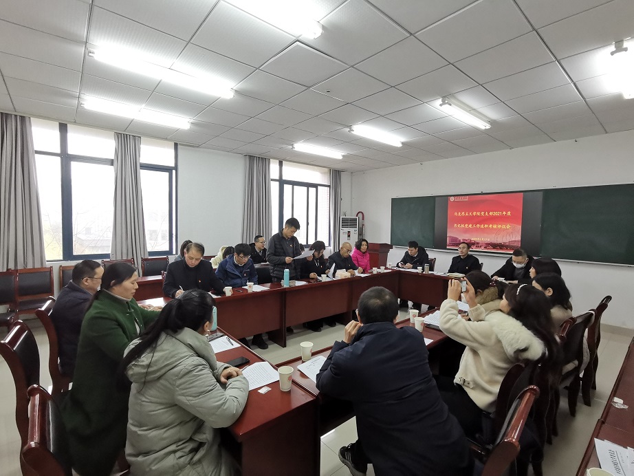 根据学校《2021年度党组织书记抓基层党建述职评议考核方案》和《中共重庆师范大学委员会组织部关于印发<支部工作考核办法(试行)>的通知》(重师委组〔2018〕58号)精神,2022年1月17日上午,我院党委在学院309会议室召开2021年度党支部书记抓党建工作述职评议考核工作会。会议由学院党委书记李晓燕同志主持,学院党委委员、纪委委员,各支部书记、支委和专职组织员参加了本次会议。
