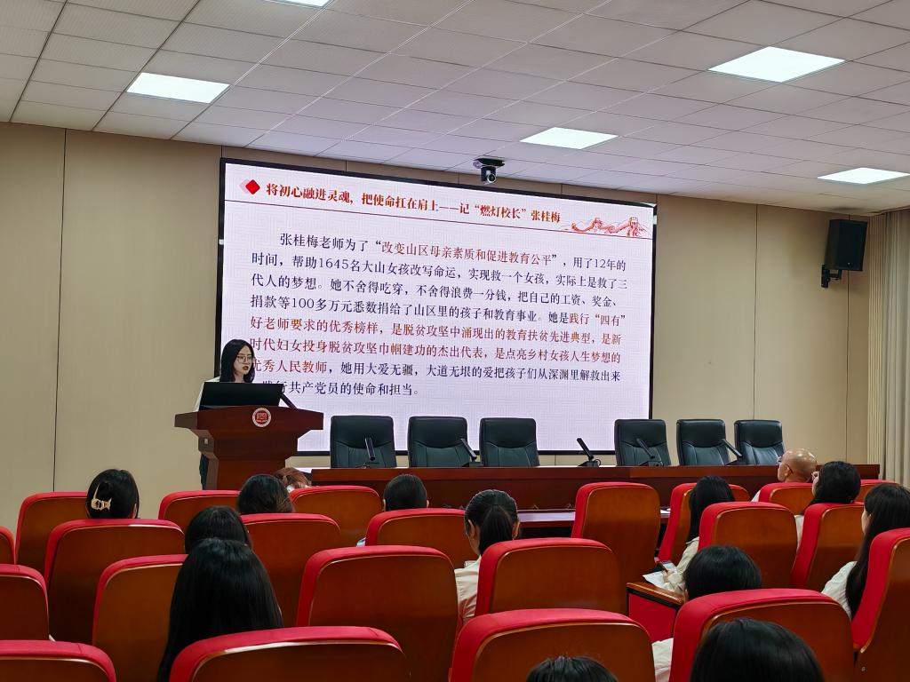 会议第一项议程:开展五月主题党日活动。由教师党员谭景文同志带领支部全体党员以《忠诚执着守初心,无私奉献担使命》为题进行了集中学习。在谭景文同志的引领和介绍下,支部全体党员同志全面深刻地认识到张桂梅老师全身心奉献边区教育事业,彻底改变诸多女孩乃至整个家庭的光辉事迹和崇高风范。谭景文同志号召支部全体党员要以张桂梅同志为榜样,学习她处处以共产党员的先进标准要求自己,为党和人民的教育事业淡泊名利、无私奉献的精神;学习她爱岗敬业、为人师表,为教书育人恪尽职守、呕心沥血的精神;学习她崇高师德、治学严谨,为追求学术锲而不舍、求真务实的精神;学习她珍爱生命、坚韧不拔,为战胜病魔而不屈不挠、积极乐观的精神。支部党员深受教育,表达了以张桂梅为榜样努力工作和学习的决心。