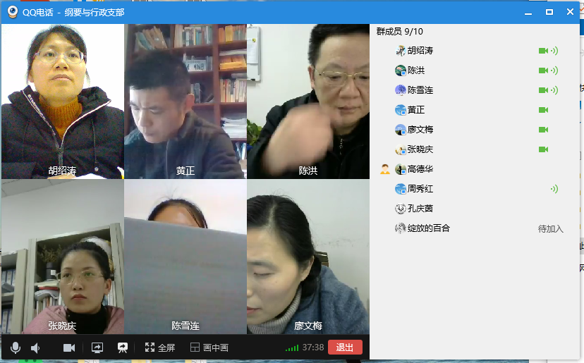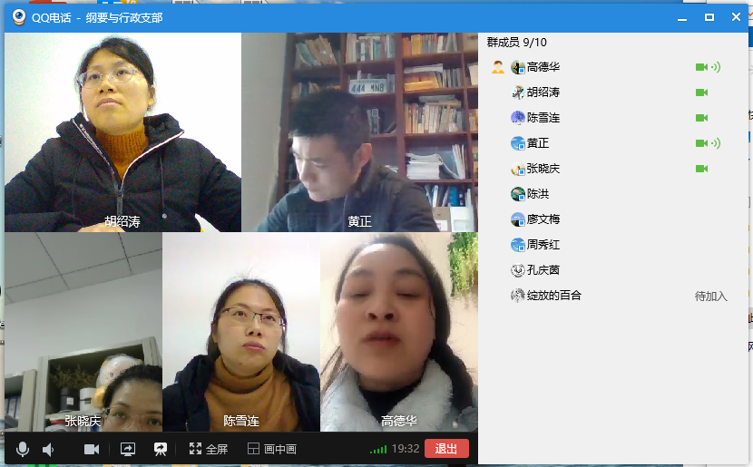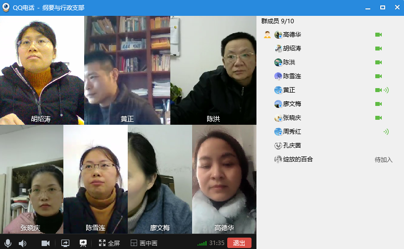 12月31日下午,中国近现代史纲要教研室与行政党支部(简称纲要与行政支部)通过QQ视频会议开展了主题党日活动。本支部参会党员应到10人,实到9人,会议由支部书记黄正同志主持。