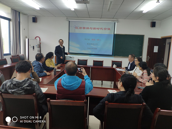 会议开始是书记讲党课,李长泰教授以学者的视角、结合时代背景系统梳理了红岩精神。“红岩精神的起因是什么?红岩精神的内容是什么?红岩精神新时代启示是什么?”关于红岩精神问题的三个追问开启了今日党课的学习。李长泰教授从红岩精神的源与流、红岩精神的具体内容、高扬红岩精神原因以及红岩精神运用途径四个方面进行阐释。他对红岩精神的新时代解读,对支部其他成员而言,这既是一次心灵洗礼,也是一种思想升华,进一步增强党员对红岩精神以及党史的认识和理解。