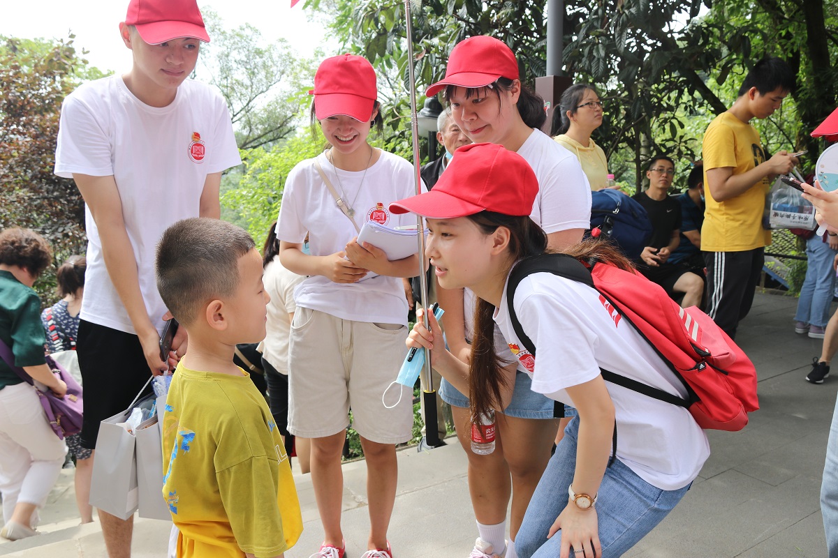 讲解结束后,实践团成员自由组队参观白公馆。在生机勃勃的石榴树面前,成员们震撼于许晓轩烈士“宁关不屈”的坚定的革命信念;在陈列的“五星红旗”面前,成员们沉浸于狱中革命者的爱国之情;在展示的手稿中,成员们追溯先烈们的精神品格和人生态度。参观完毕后,实践团成员向游客们展开问卷调查,以了解民众对红岩文化的认知情况及宣传教育现状。在调研过程中,实践团成员罗越红与一位八岁的新疆小朋友亲切交谈,向他讲述了小萝卜头的英勇事迹,在小朋友心中播下了红岩精神的种子,潜移默化地宣传了红岩文化。