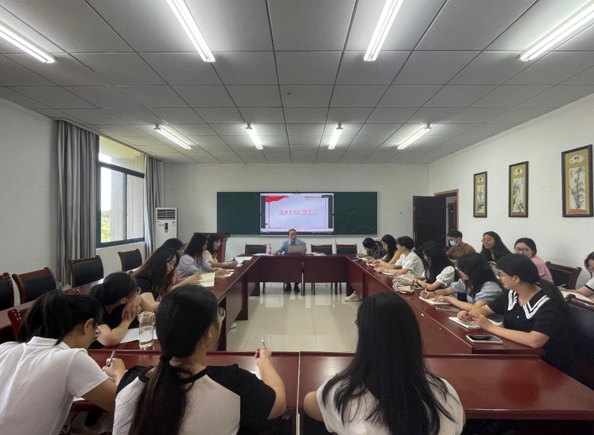 为积极落实学院关于学习贯彻习近平新时代中国特色社会主义思想主题教育相关部署工作,2023年6月27日,我院党委委员李晓燕书记在汇贤楼309会议室为研究生第二支部讲授了《党史上的纪律建设》专题党课。会议由支部书记徐琴同志主持,全体党员线上线下参会。