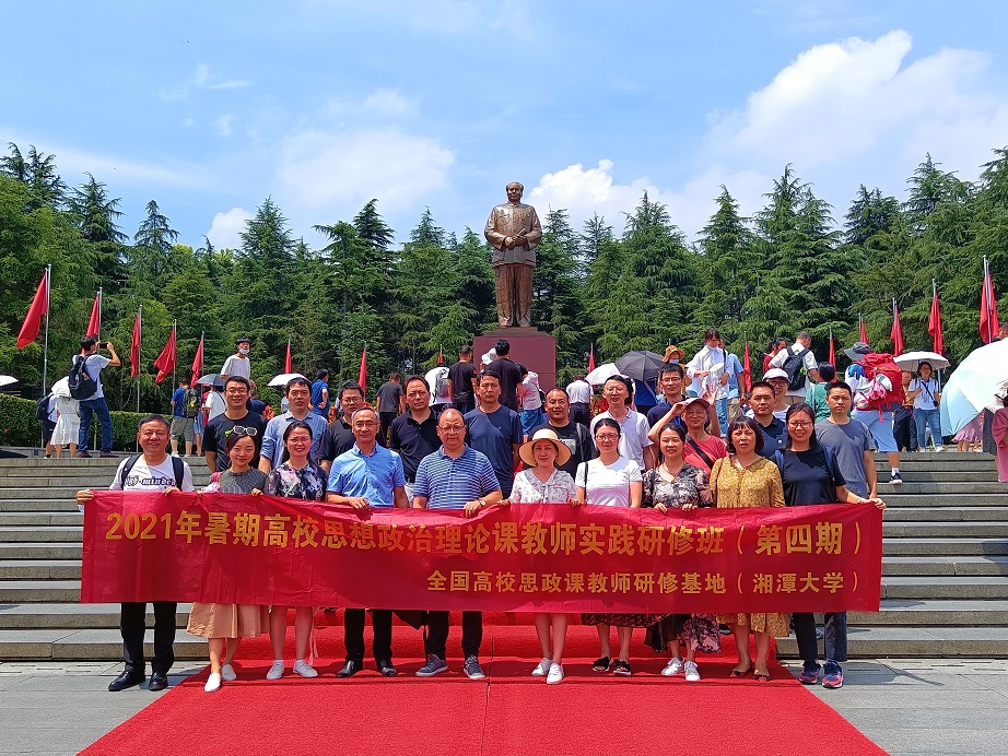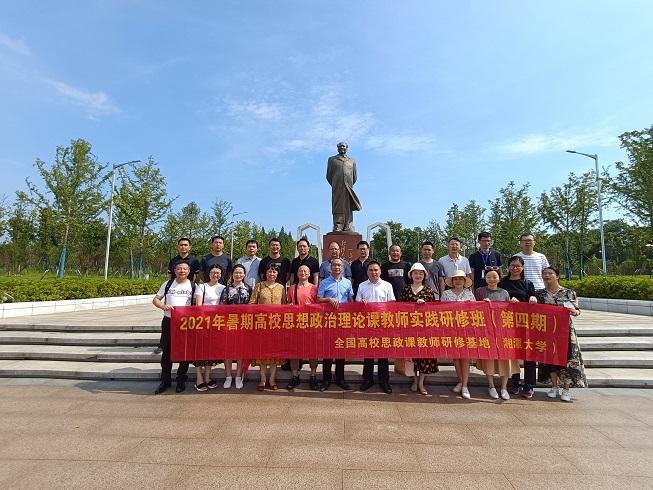 2021年7月19日到25日,我院毛泽东思想和中国特色社会主义理论体系概论教研室、思想道德修养与法律基础教研室教师一行23人到教育部思想政治理论课教师暑期实践研修基地湖南湘潭大学参加了“弘扬红色文化 传承红色基因 讲好思政故事”的暑期实践研修。西北工大大学、重庆师范大学、临沂大学、江苏财经职业技术学院等学校的思政课老师参与了本次学习研修。