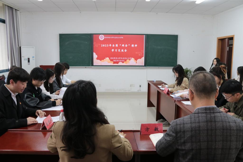 而后,各学生代表发言。发言学生纷纷表示将继续加强理论研究素养、提升宣讲内容质量,在传播党的优秀理论中不断汲取精神力量。学生干部代表黄丽娅表示,2023年全国两会为青年学子与国家发展之间架起一道同频共振、相互感知的“桥梁”,思政学子更应认真学习2023年全国两会精神,从中汲取理论养分和精神力量,探索未来发展的可能性;研究生代表耿小雁认为,青年学子应自信自强,守正创新,努力提升自身知识才干,进一步增强使命意识和责任意识;理论宣讲团代表王延妍结合自身理想,勉励大家成长为一名与时俱进的思政教师,及时向学生们传达党的精神指导,做好“理论宣讲员”。