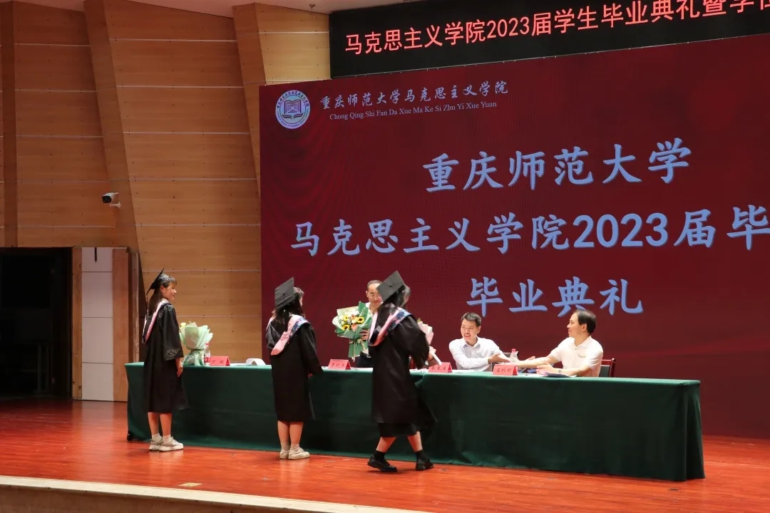 典礼第五项议程,院党委副书记、校友分会秘书长方敏宣读2023届毕业生校友分会理事名单,并颁发聘书。根据重庆师范大学校友会推荐2023届毕业年级校友分会理事通知有关要求,经各班级推荐和学校校友会同意,任命4名本科毕业生、3名硕士毕业生为重庆师范大学校友会2023届毕业年级校友分会理事。