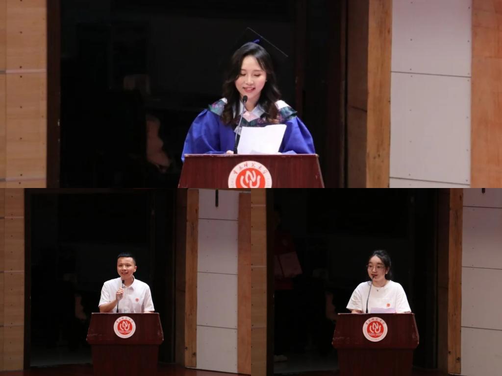 低年级学生代表高锐呼吁低年级同学要坚定自身理想信念,有“咬定青山不放松”的坚持和坚守初心使命的执着,始终做到踔厉奋发、笃行不怠,并衷心祝愿毕业生们前途似锦、未来可期,祝愿学院年年桃李、岁岁芬芳。