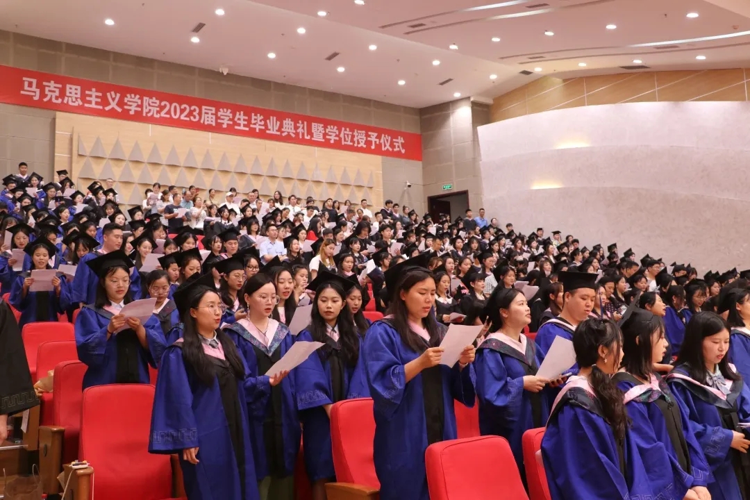 仪式尾声,全体师生合唱重庆师范大学校歌。在青春激昂的校歌合唱中,澳门金威尼斯游戏2023届学生毕业典礼暨学位授予仪式圆满落幕。