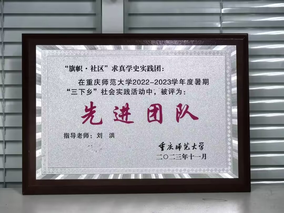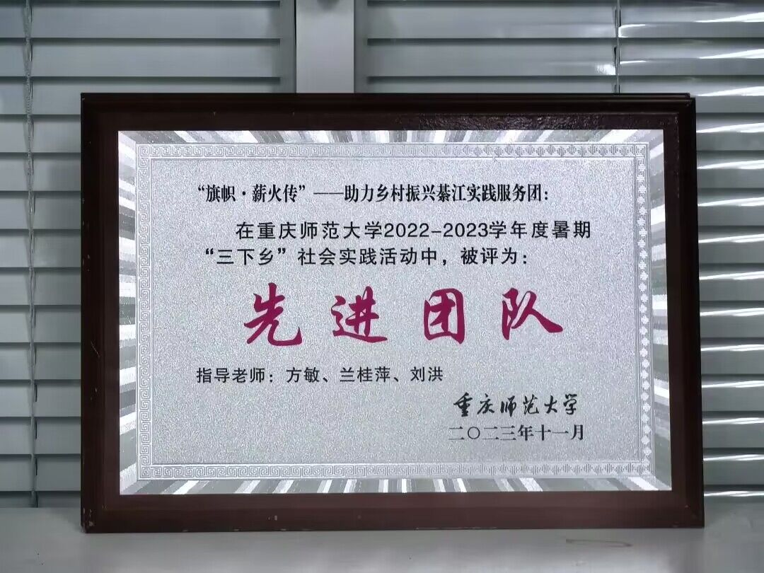 在本次暑期“三下乡”社会实践活动中,我院“旗帜·薪火传”——助力乡村振兴綦江实践服务团、“旗帜·社区”求真学史实践团赓续红色基因,担当青年责任,荣获“先进团队”称号。