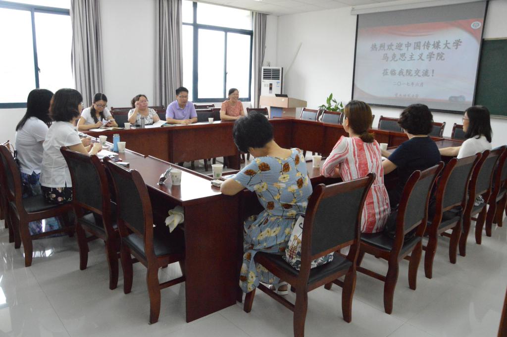 然后,中国传媒大学澳门金威尼斯游戏的马老师介绍了学院的具体情况,简单说明了课程的规模、形式和内容等,强调了对课程内容质量的设计。在双方提问交流环节,共同探讨了思想政治理论教学改革、如何增强思政课的亲和力、研究生报考等相关问题。最后,吴院长提议双方互派教师深入课堂进行实践学习。