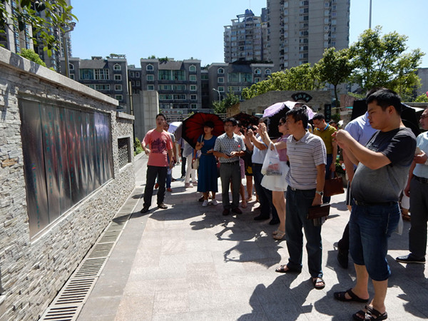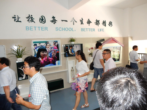经过近一小时的行程,所有学员首先来到大渡口区育才小学。育才小学校方热情接待并安排了专人冒着酷暑随行讲解。整齐划一、形式多样,内容详细、做法先行的图片、资料的展示,让所有参观者感受到现代教育的魅力,“让校园每一个生命都精彩”的育人理念更彰显了育才学校浑厚的人本主义教育思想。