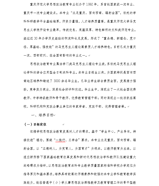重庆师范大学2021级思想政治教育专业(师范)本科人才培养方案