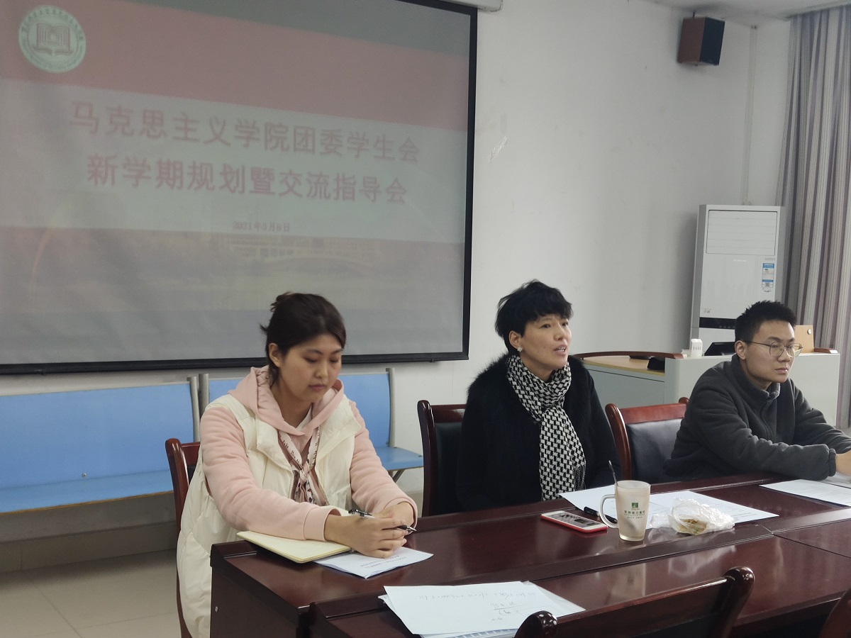 各部门负责人总结完毕后,学院团委书记马小又老师就各部门新学期规划进行指导与交流。首先,马小又老师对团委学生会所做的努力给予肯定,强调学生干部应厘清加入学生会的意义。随后,马小又老师结合自身经验,建议各部门“因部而异”,寻找合适方法、创新交接方式,明确部门分工、强化团队意识,顺利完成部门交接工作。最后,马小又老师针对各部门新学期计划工作提出三点建议:一是关注时政、关注外界,勤于思考、勇于创新;二是积极调研,满足学生实际需要;三是重视宣传,宣传工作要有时效性、针对性、凝聚力。