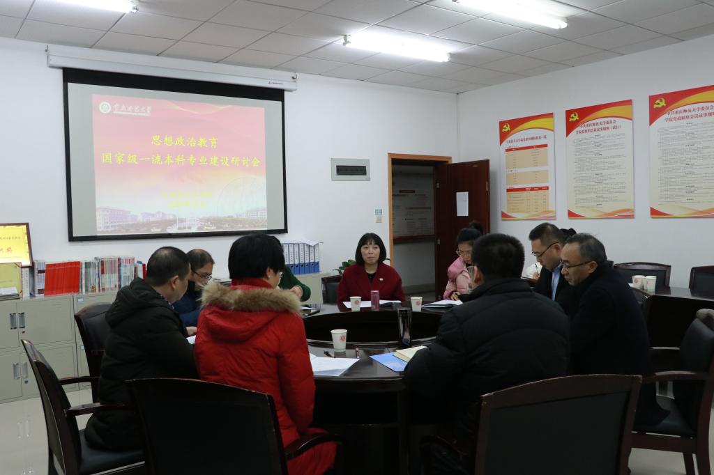 2020年12月29日下午3:00,我院思想政治教育国家级一流本科专业建设研讨会在学院301会议室召开。学院全体处级干部、科级干部、政教系负责人参加此次会议。研讨会由院长陈洪教授主持。