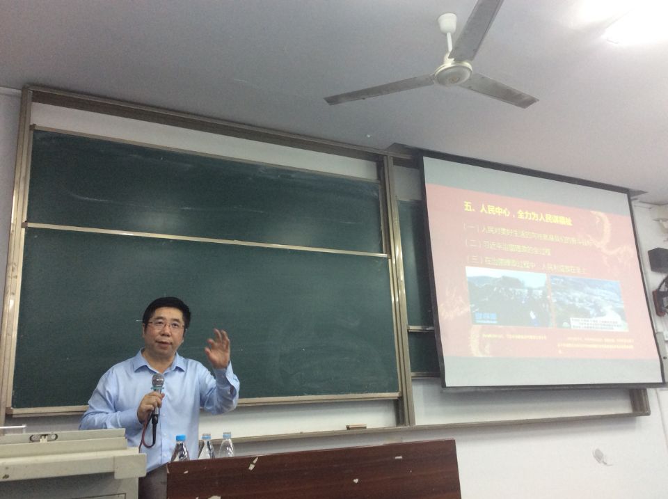 2019年5月15日晚,“习近平新时代中国特色社会主义思想”全校通选课在弘德楼15301教室举办第十一讲。本次讲座由校党委副书记、校长孟东方教授主讲,主题是“从习近平到习近平新时代中国特色社会主义思想”。讲座由澳门金威尼斯游戏院长陈洪教授主持。