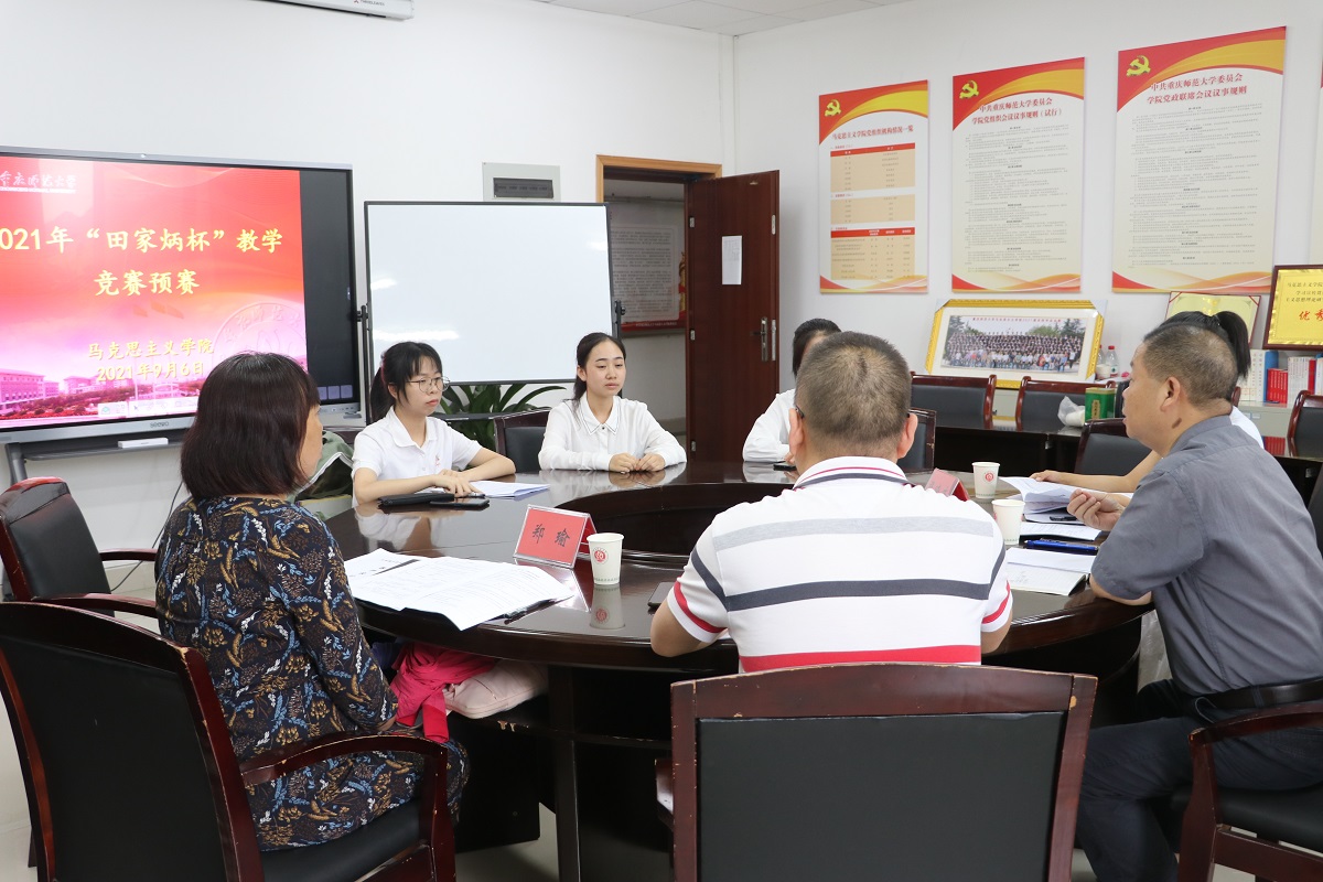 为进一步提升学生教学实践能力、选拔优秀学生代表学院参加全国“田家炳杯”教学竞赛,2021年9月6日下午,2021年度“田家炳杯”教学竞赛预赛在我院301会议室举行。本次比赛由副院长况明安、党委副书记方敏、指导教师郑瑜、教科办主任张晓庆担任评委。