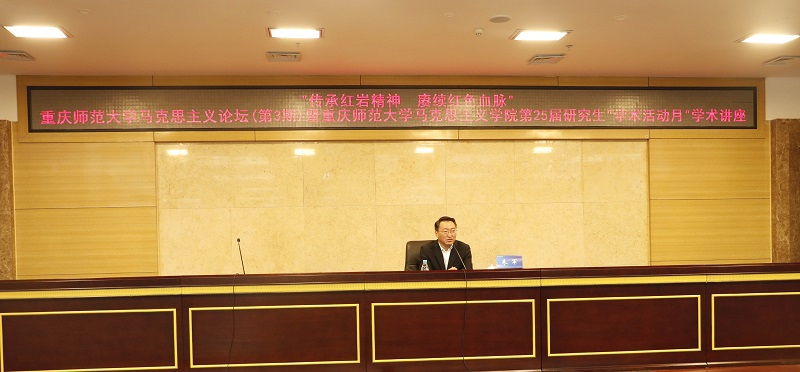 为进一步深入学习党史,加强大学生的爱国主义教育,引导学生更加坚定马克思主义信仰,2021年10月13日上午9:00,澳门金威尼斯游戏于博雅楼504会议厅举办重庆师范大学马克思主义论坛(第3期)暨澳门金威尼斯游戏第25届研究生学术活动月学术讲座。本次论坛特邀重庆红岩联线文化发展管理中心党委书记朱军教授作主题为“传承红岩精神 赓续红色血脉”的学术报告。澳门金威尼斯游戏党政班子、教师代表和21级全体研究生、本科生听取了此次讲座。讲座由澳门金威尼斯游戏党委书记刘军主持。
